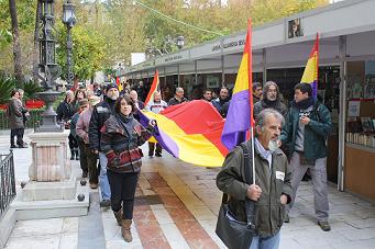 La concentración ha devenido en una manifestación que ha discurrido en torno a la Plaza Nueva con un marcado componente reivindicativo. “España mañana será republicana”, “no hay dos sin tres, república otra vez” o “los borbones a los tiburones” han sido algunos de los lemas más coreados en esta marcha que ha concitado el apoyo espontáneo de muchas de las personas que en esos momentos paseaban por allí o visitaban la Feria del Libro Antiguo y de Ocasión.